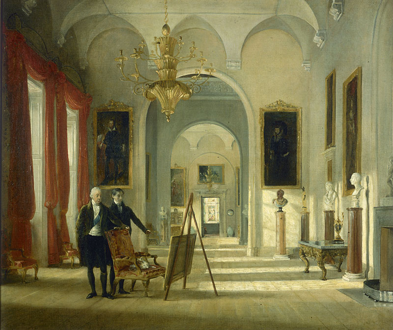 The sumptuous interiors are decorated with frescoes, tapestries, and sculpture, while paintings by such artists as Holbein, Gainsborough, and Canaletto adorn the walls. The core of the picture collection was built up by the 3rd, 4th and 5th Earls during the 18th century, notably during their travels in Italy on the Grand Tour, although some of the works were later sold or destroyed by fire in 1940. Valuable later additions were made by George, 9th Earl of Carlisle and the last with this title to live at Castle Howard. An accomplished painter, he counted Burne-Jones and William Morris among his friends, and the works in the collection by Lord Leighton, G.F.Watts and Walter Crane amongst others are due to his patronage.