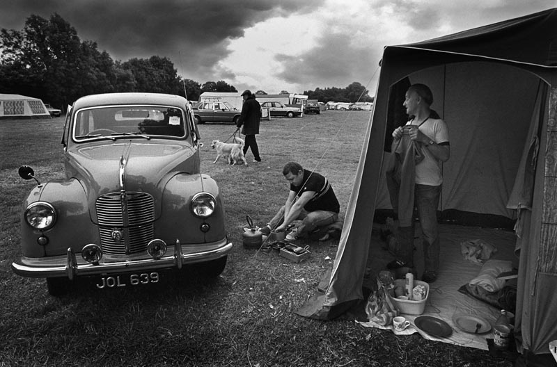 The image set covers Britain and Europe, and other locations all over the world, while the subject matter falls broadly under the category of street photography. A little boy with a dirty face looks warily at the camera while wiping away tears; an elderly couple sit in coats and hats to read the newspaper by the shelter of a breakwater on a Norfolk beach; a sword-swallowing street performer in Ghangzhou, China, gestures to the camera while the sword hilt protrudes from his mouth. There are also a few portraits: of Enoch Powell, explorer Thor Heyerdahl, writer Sue Townsend.