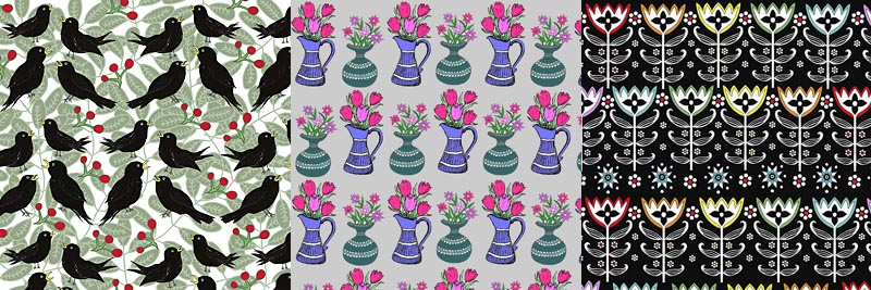 Over the past couple of years, Tess has worked on a range of surface repeat pattern designs and we're delighted to present her collection to you here. Inspired by nature and childhood nostalgia, Tess's original artworks range from organic forms of leaves and flowers to more whimsical themes such as fairy toadstools or fluffy ducklings. Together they form a fabulous cohesive set for anyone wishing to utilise several designs at once and have great potential for backgrounds, end papers, book covers, stationery, gift products, textiles and much more.
